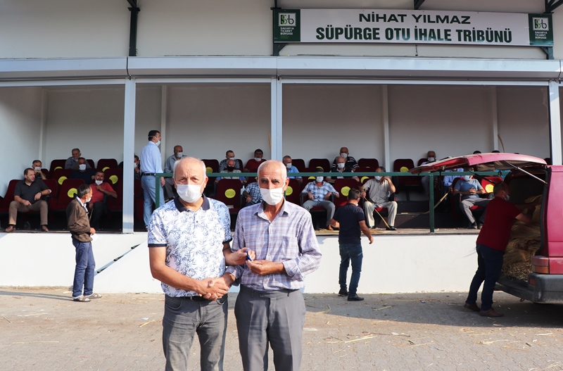 Dualarla yapılan açılışın ardından. 2020 yılı hasat sezonunun ilk mahsulü süpürge otunu Borsa’ya getirerek tescil ettiren üretici Hamit Karagöz’e ilk mahsul hediyesi Meclis Üyesi Nuri Köseoğlu tarafından takdim edildi. Köseoğlu, yeni sezonun hayırlı olmasını dileyerek “İnşallah bereketli bol kazançlı, hem üreticimizin hem tüccarımızın yüzünü güldüren bir sezon yaşarız” dedi.