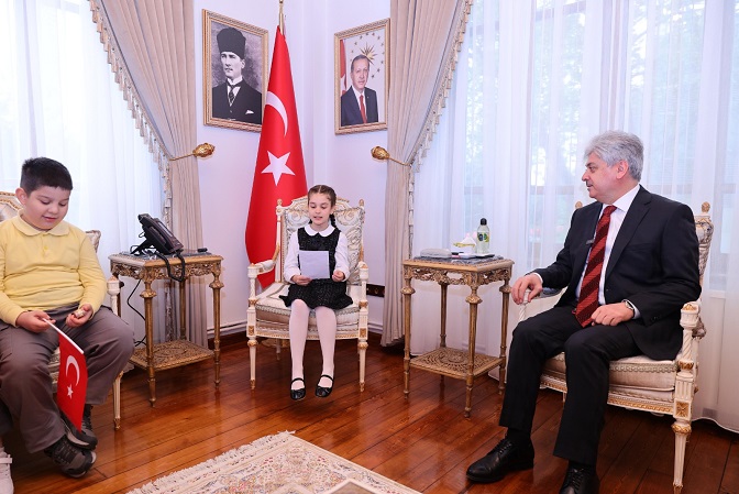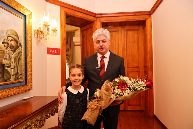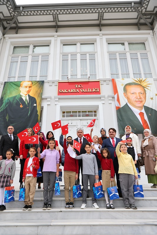 öğrenciler, öğretmenleri eşliğinde Sakarya Valisi Rahmi Doğan tarafından makamında kabul edildi.