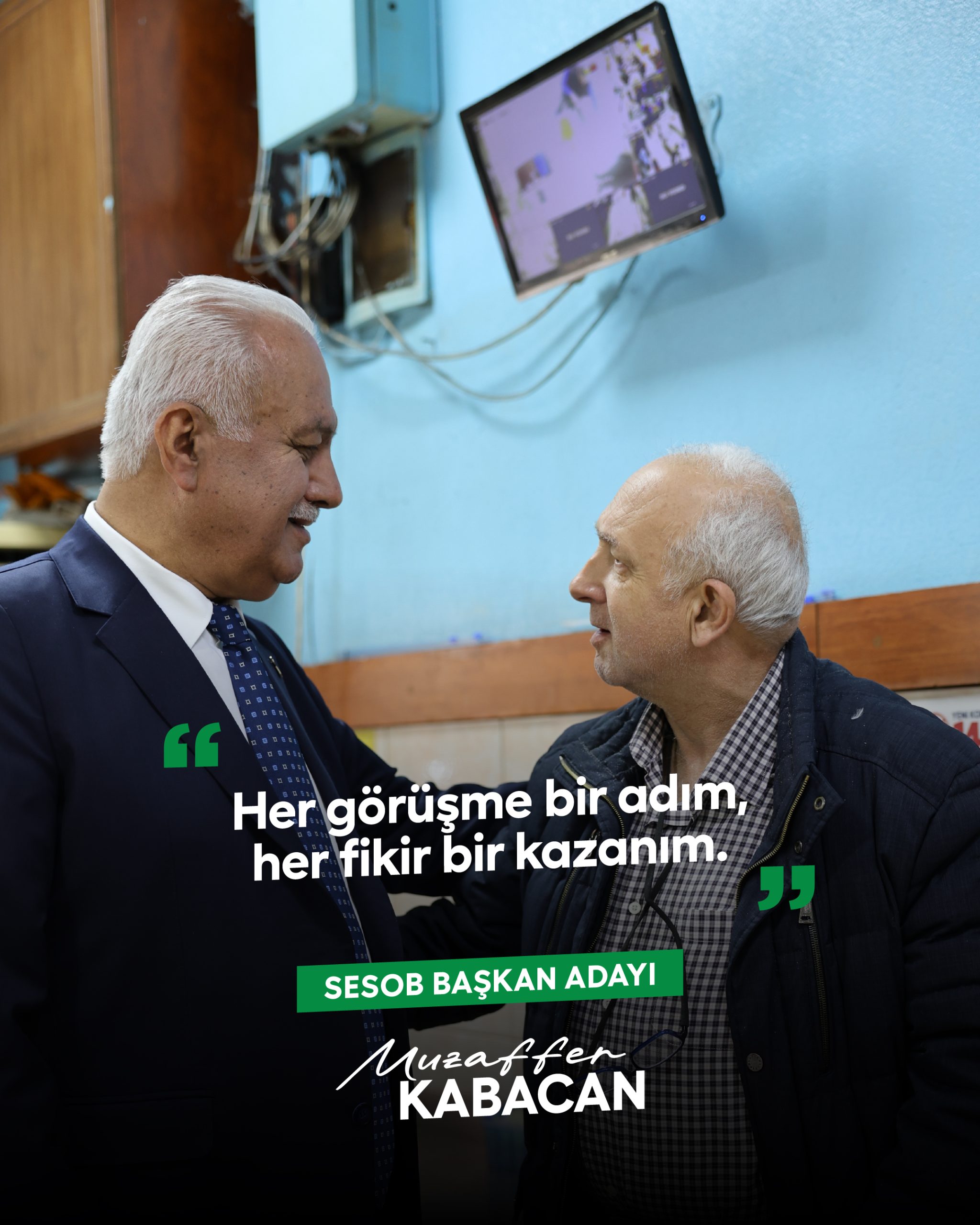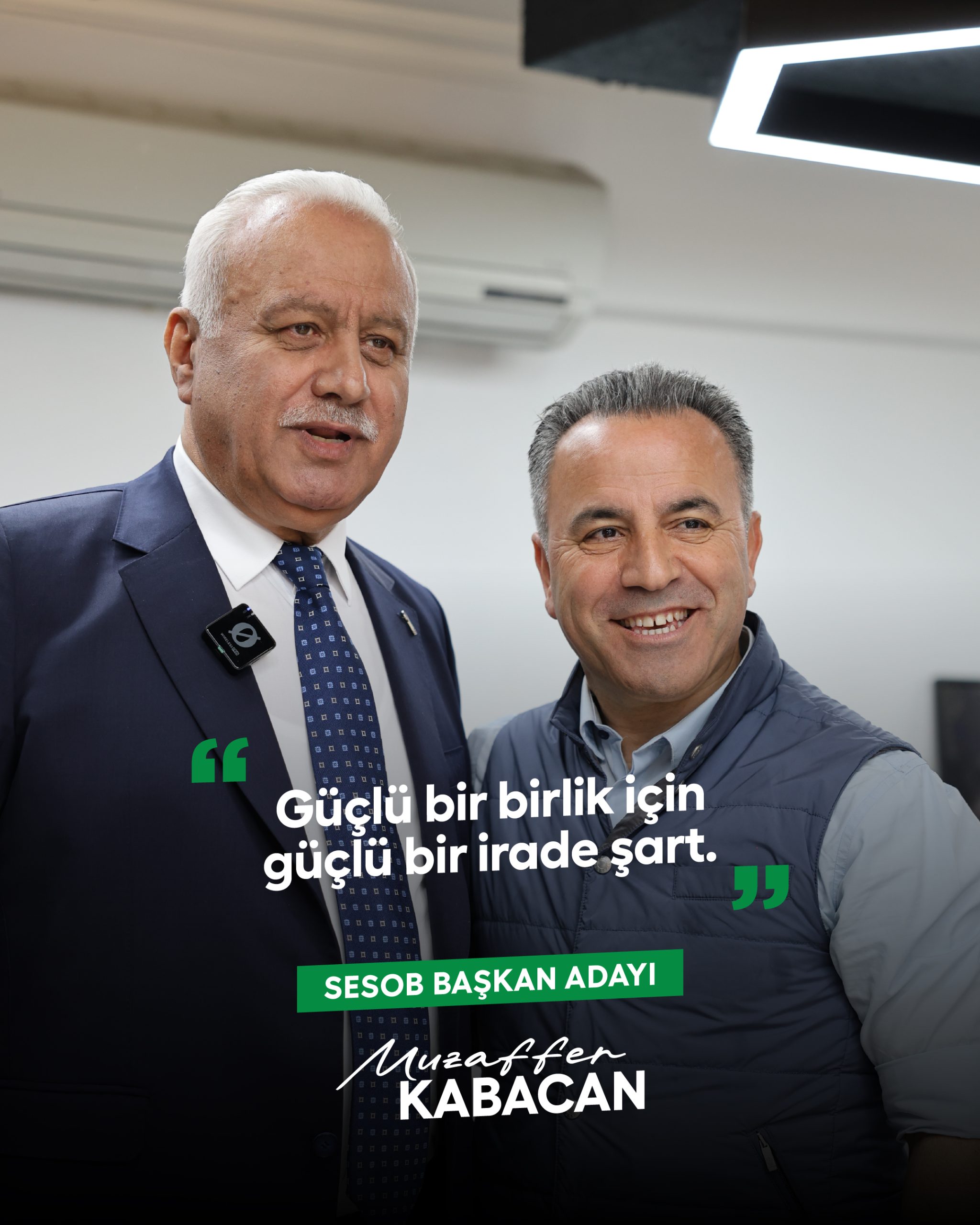 SESOB başkan adayı Muzaffer Kabacan, kırgınlık süreçlerinin olduğunu belirterek, “Bunu burada bitirmeye geldik. Biz Sakarya’nın evladıyız. Birşeyler söyleyip üzmüş olabiliriz. Kusura bakmasın. Hakkını helal etsin. Benim de hakkım varsa helal olsun. Dostumuz, arkadaşımız. Şimdi arkadaşlar biz seçim sürecine girdik biliyorsunuz. Bu barışma kesinlikle bir taraf çekme, taraf tarafa olma olayı değil. Bu barışmayı, bu kırgınlığı bitirmeyi değerli Ömer kardeşimle Levent kardeşim aracı oldular. Kendilerine teşekkür ediyorum” dedi.