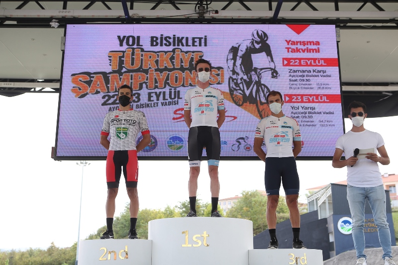 26.8 kilometrelik parkurda zamana karşı yarışan U23 Klasmanında şampiyonluğu Spor Toto Bisiklet Takımı’ndan Oğuzhan Tiryaki alırken Büyük Erkeklerde ise şampiyonluğu Sakarya Büyükşehir Salcano Bisiklet Takımından Mustafa Sayar elde etti. 13.5 kilometrelik Genç Erkekler yarışının kazananı ise Çatalhöyük Çumra Belediye Spor’dan Muhammet Çevik oldu. İki ayaktan oluşan şampiyonanın ikinci ayağı ise 23 Eylül Çarşamba günü Ayçiçeği Bisiklet Vadisi’nde devam edecek.