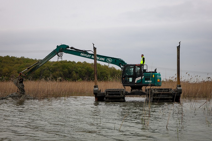 Devlet Su İşleri (DSİ) iş birliğiyle havza ve gölün tahliye kanalı olan Çark Deresi bağlantı