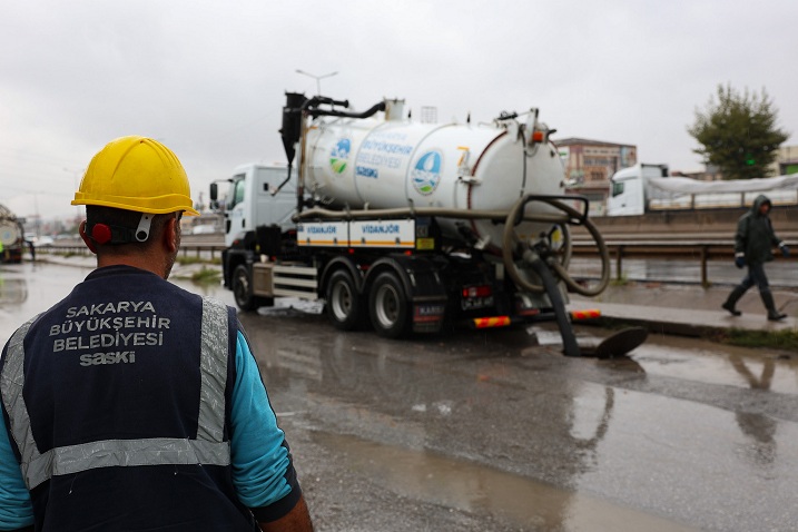 Sakarya Büyükşehir Belediyesi Su ve Kanalizasyon İdaresi (SASKİ), 25 Ocak Cumartesi günü gece saatlerinde başlayan ve gün içinde etkisini artıran yağışın olumsuzluklara neden olmaması için sahada çalışmalarını sürdürdü. Vidanjörler ve kanal araçları ile birlikte geceden beri mesaisini aralıksız şekilde sürdüren ekipler su birikmelerine karşı anlık müdahalelerde bulundu.