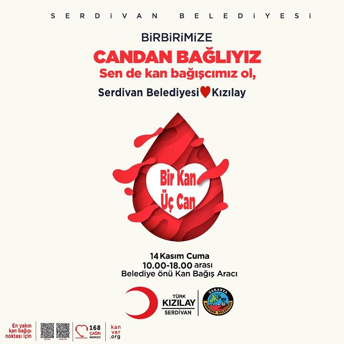 Serdivan Belediyesi Hizmet Binası önüne kurulacak olan kan bağışı aracı, 14 Kasım Cuma