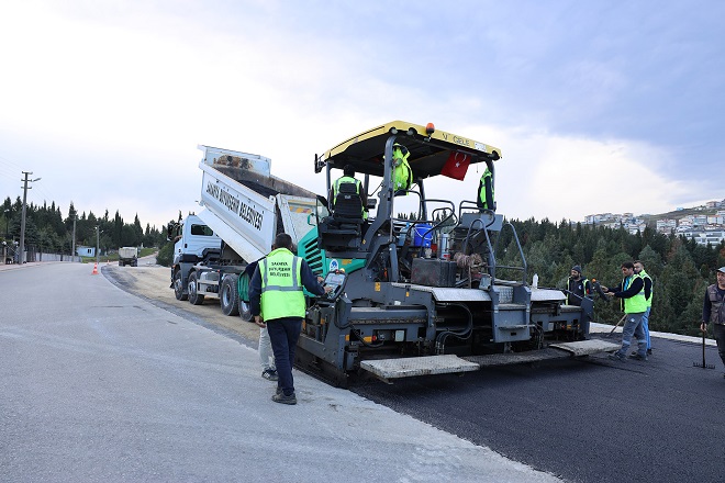 dolgu ve altyapı çalışmaları tamamlandı. Sıcak asfalt serim işlemi sonrası kaldırım imalatı
