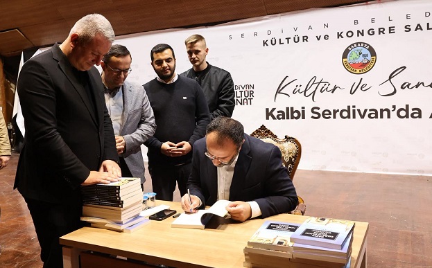 Yaklaşık iki saat süren programın sonunda, Serdivan Belediyesi tarafından katılımcılara hediye edilen kitabını Taha Kılınç imzaladı.