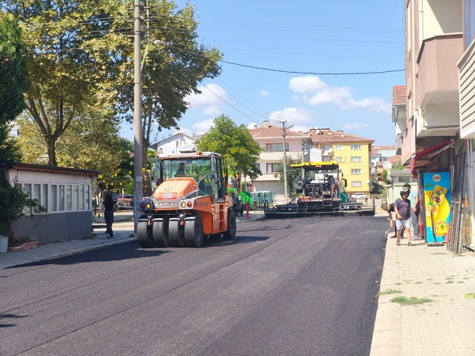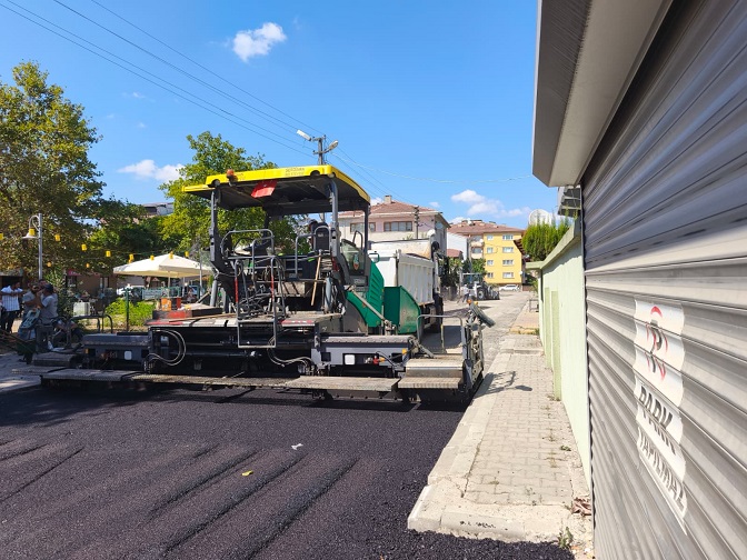 deforme olan zeminin tamamen yenilendiği sokakta gerçekleştirilen sıcak asfalt serim