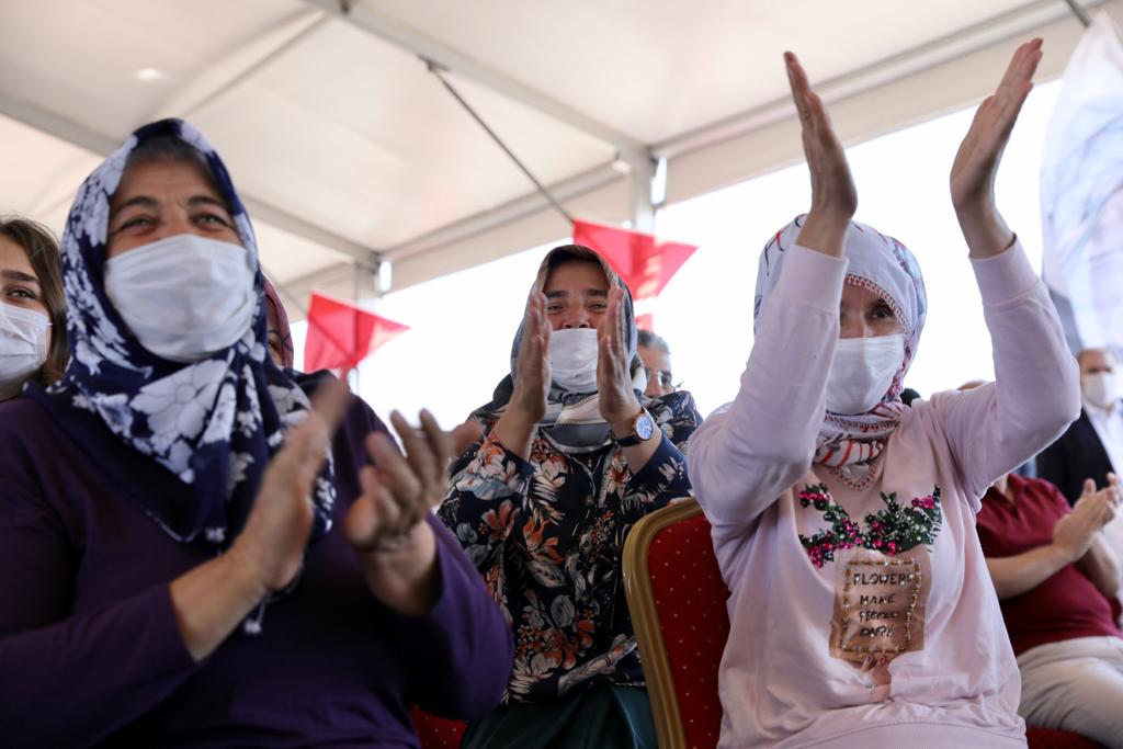 “Bugün niye buradayız” diyen İmamoğlu, “Size vaatler vermek için değil, yaptıklarımızı konuşmak için buradayız. Gururla söylüyorum. Biz, bir dokunuş yaptık; siz, zaten üretiyordunuz. Yüreği rahat bir şekilde üretime odaklandınız ve ürettiklerinizle siz de gurur duyuyorsunuz. Zamanımızı bazen boşa geçiren işlerle uğraştık. Öyle seçimdi, bir daha seçimdi, oydu buydu ama esas iş bu; üretmek” ifadelerini kullandı. Türkiye’de iyi gitmeyen can yakıcı konulardan ikisinin “eğitim” ve “tarım” olduğunu vurgulayan İmamoğlu, “Tarım iyi olmadığı için, toplumdaki mutluluğu, huzuru ve refahı sağlayamıyoruz. İnsanlar, ha bire kente göç etmeye çalışıyor; bu sefer mutsuzluk daha da büyüyor. Üreten insan köyde kalsa, ürünün karşılığını alsa, çok ama çok mutlu olacak. Yaklaşık 60 milyar lira gibi bir parayı gıdada, yurt dışına yolluyoruz. Neyimiz eksik? Toprağımız mı eksik, suyumuz mu eksik ya da sizin gibi üreten, becerikli kadını-erkeği mi eksik? Var kardeşim, var. Bizim insanımız her şeyi üretir. Bunun bir kader olmadığını, bu konuda kararlı olduğumuzu buradan işaret ediyoruz. Türkiye’de, en büyük şehrin kırsalında bile ürettiğinde, ne kadar güzel ve kıymetli işler ortaya çıkarılır; örneğini vereceğiz. Sizi bu anlamda -bugün değil sadece- hiç yalnız bırakmayacağız” diye konuştu.