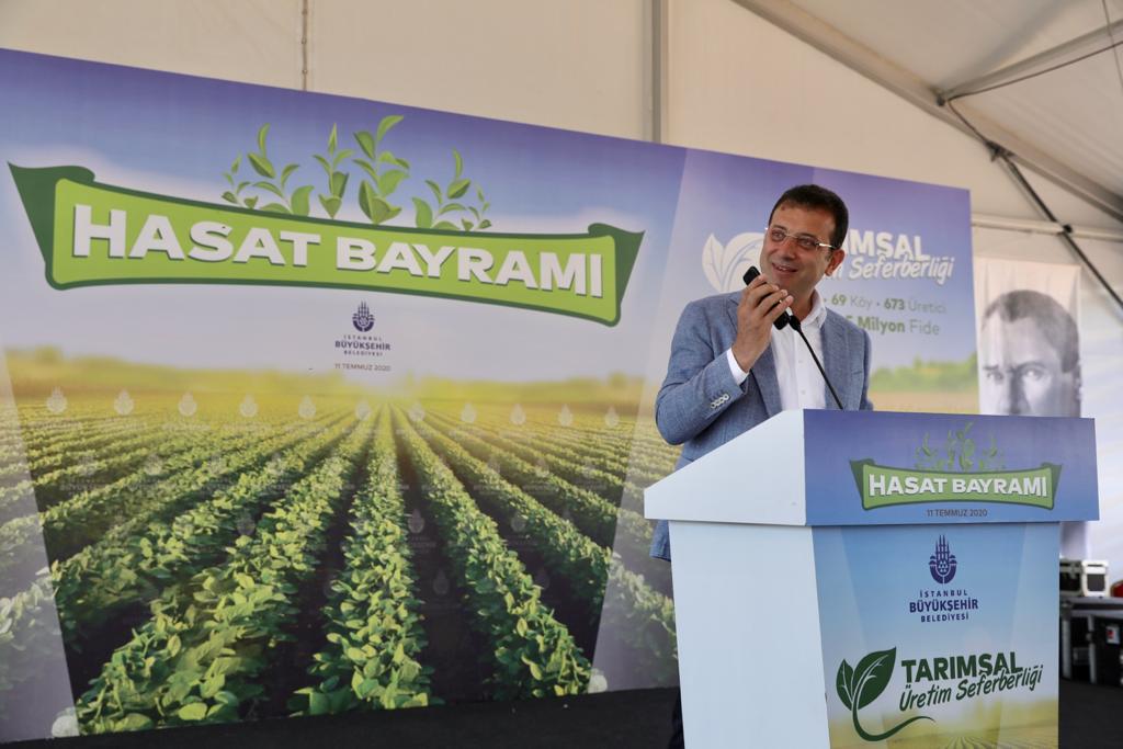 “Üretmek, ekmeğini kazanan insanları var etmek, işsizliği azaltmak, -bakın, bu ülkede büyük bir işsizlik ve temel gıda sorunu vardır- bunları aşmak… Bunlara Türkiye’nin en büyük kurumlarından birisi olan İBB de uğraşmak, çözüm üretmek, katkı sunmak zo-run-da-dır. Onun için yapıyoruz bunları size. Hem kardeşlik duygumuzu artıracağız hem refah düzeyimizi yükselteceğiz hem hep beraber adil bir şekilde paylaşacağız, aynı zamanda da mutluluğu bütün toplumun her kademesine ve kesimine yayacağız. Gerçek belediyecilik, budur. Siyaset denen o sevmediğimiz alanı, bu işlere hiç dahil etmeyeceğiz. O başka bir şey. Bizim o işle hiçbir işimiz yok. Hasat bayramımız hayırlı olsun. Bereketi bol olsun. Yarın Salı Pazarı’nda kazancınız bol olsun. İnşallah, üreticiden tüketiciye ulaşma zincirimiz hayırlı olsun. İstanbulluların mutfağında lezzete dönüşsün bu üretim.”
