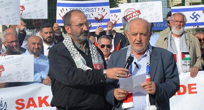 Bugün burada Sakarya Milli İrade Sivil Toplum Kuruluşları temsilcileri olarak Siyonist İsrail’in başta Gazze olmak üzere Filistinin her köşesinde işlemekte olduğu soykırıma ve insanlığa karşı suçlara karşı durmak ve başta Sayın Cumhurbaşkanımız olmak üzere parlamentoda grubu bulunan tüm siyasi partileri 1949 yılında zamanın Bakanlar Kurulu Kararı ile alınan İsrail’i devlet olarak tanıma kararının kaldırılmasına karar veren bir Kanunu çıkarmaya davet etmek üzere toplanmış bulunmaktayız.