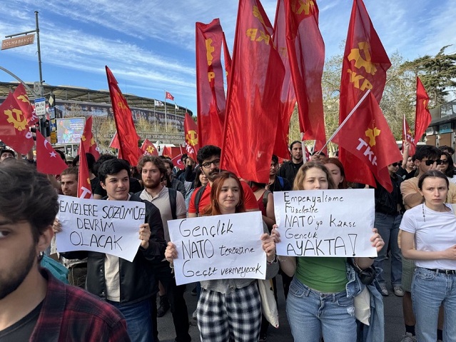 Türkiye Komünist Gençliği (TKG), emperyalizmin savaş aracı olarak 75 yıl önce kurulan Kuzey Atlantik Antlaşması Örgütü’ne (NATO) karşı yürüyüş ve basın açıklaması gerçekleştirdi.
