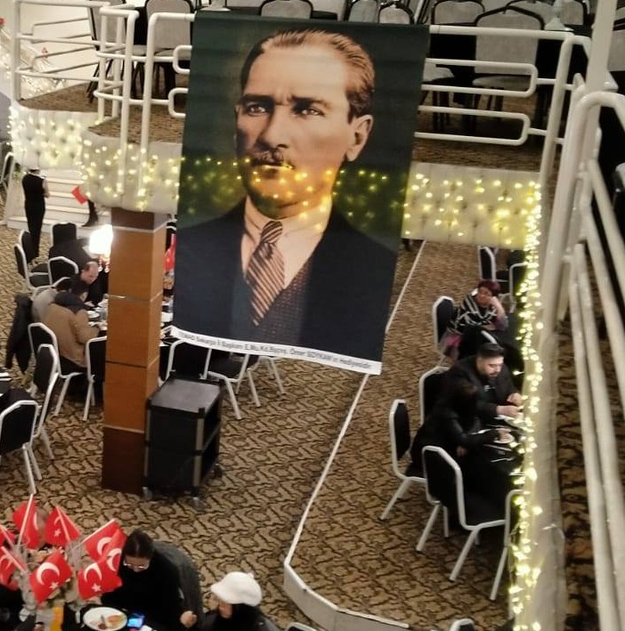 Salon Türk bayrakları ve Atatürk posterleriyle süslendi