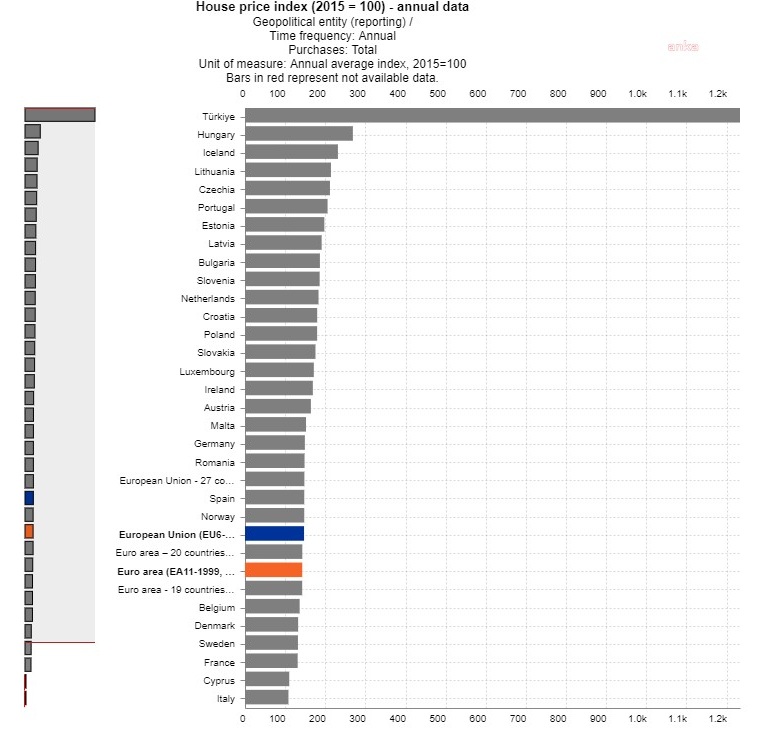 Avrupa İstatistik Ofisi’nin (Eurostat) verilerine göre; Türkiye, 2 yıldır uygulanan yüzde 25’lik tavan sınırına rağmen konut kirasında yüzde 125,10 ile en fazla artış gösteren ülke oldu.