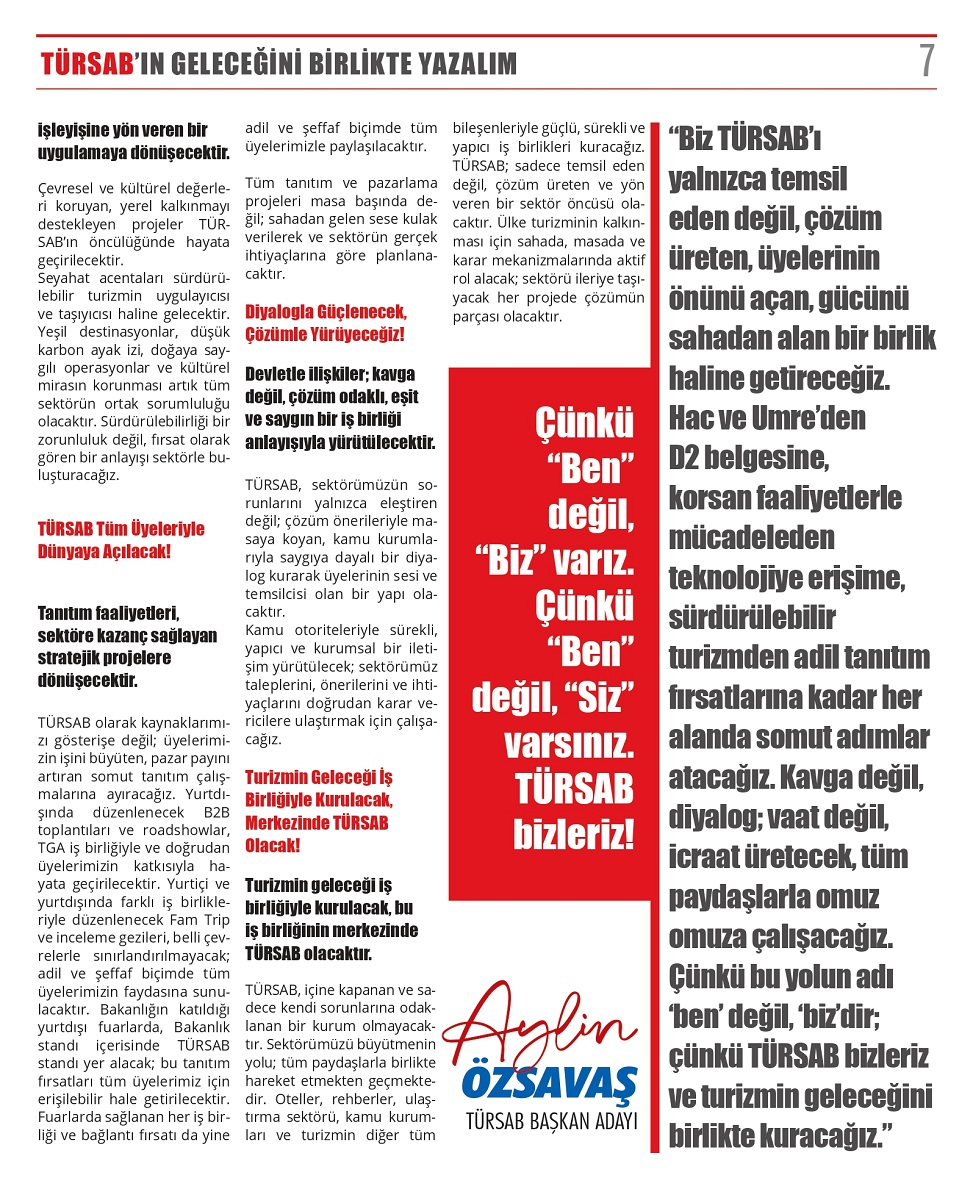 • Medyada “TÜRSAB Başkanı Adayı Aylin ÖZSAVAŞ sahaya indi” gibi başlıklarla saha çalışmaları ve aktif çalışmaları öne çıkmıştır