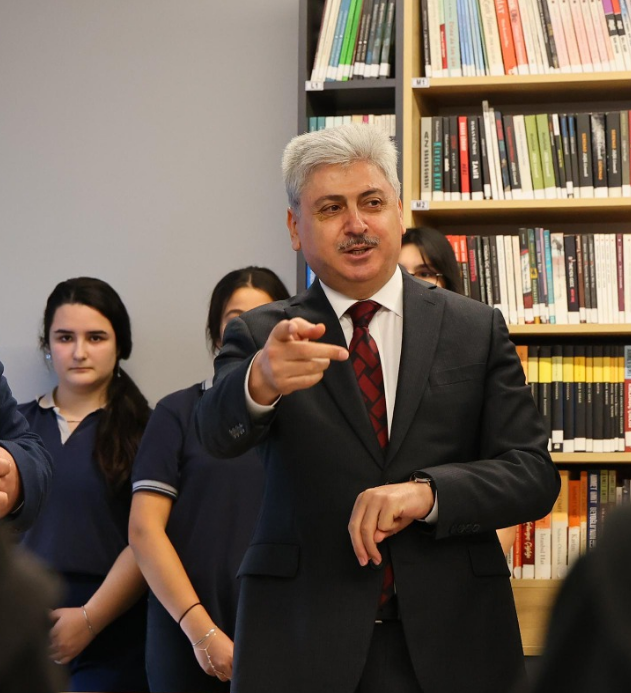 Kütüphane ortamında yapılan soru-cevap etkinliğinde öğrenciler, merak ettikleri konular hakkında Valimiz Sayın Rahmi DOĞAN’a sorular yöneltti. Eğitim, kariyer ve sosyal yaşam üzerine gelen sorulara samimi yanıtlar veren Sayın Valimiz, öğrencilere hedeflerine ulaşma yolunda azimli ve kararlı olmalarını tavsiye etti.