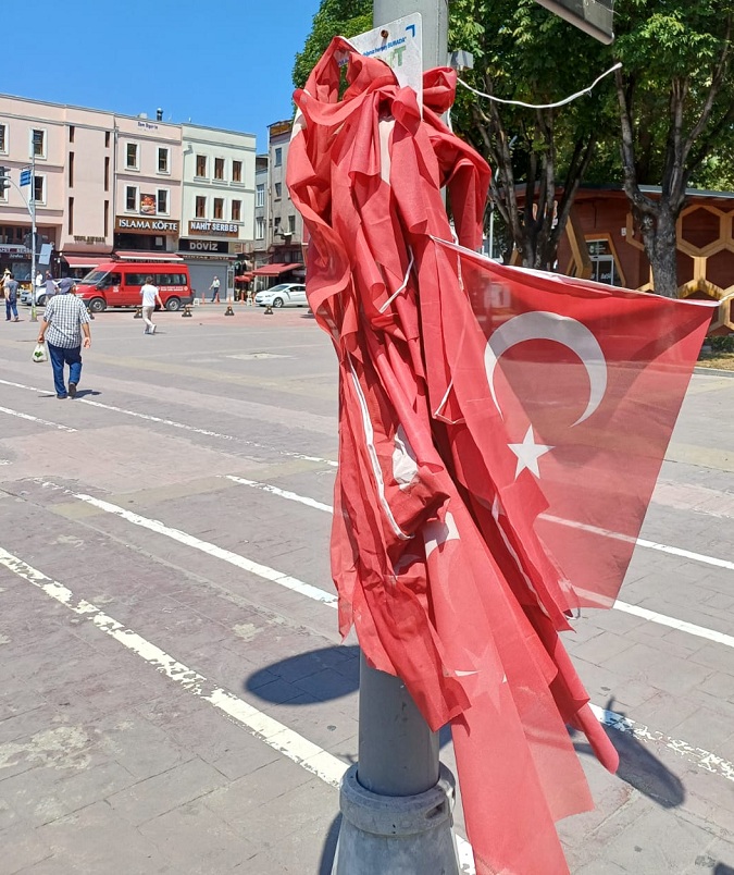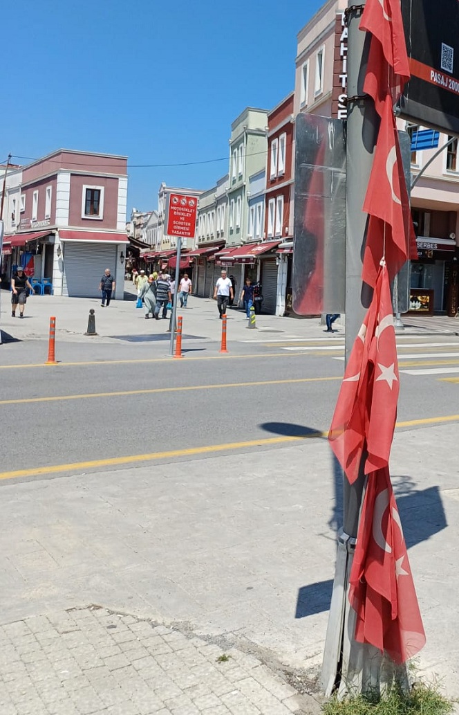 Adapazarı halkı da bu duruma sessiz kalmadı. Sosyal medya platformlarında paylaşılan fotoğraflar, kısa sürede geniş bir yankı uyandırdı. Vatandaşlar, bayrağa yapılan bu saygısızlığa son verilmesi için yetkililere seslendi. Adapazarı merkezinde yaşanan bu olay, Türk bayrağının taşıdığı değeri ve ona duyulan saygıyı bir kez daha gözler önüne serdi. Yetkililerin bu konuda atacakları adımlar merakla bekleniyor.