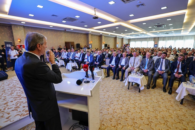Dönüşüm için risk alıp bir yerden başlamak gerektiğini ifade eden Başkan Alemdar, “Bir farkındalık oluşturalım. Gelin birlikte bu şehirde kısır döngülerle küçük menfaatlerle değil, milletin bekasını sağlayabilecek adımlar atalım. Bir yerden başlamak, risk almak lazım. Biz bir yerlerde bedel ödemekten korkarak adım atmazsak yarınları göremeyiz. Bu şehirde bir deprem olduğunda nüfusumuzun yarısını kaybederiz. Bu duygularla şehrimize duyduğunuz aidiyet duygusu için şehrin geleceğinde bende varım dediğiniz için teşekkür ederim” şeklinde konuştu.